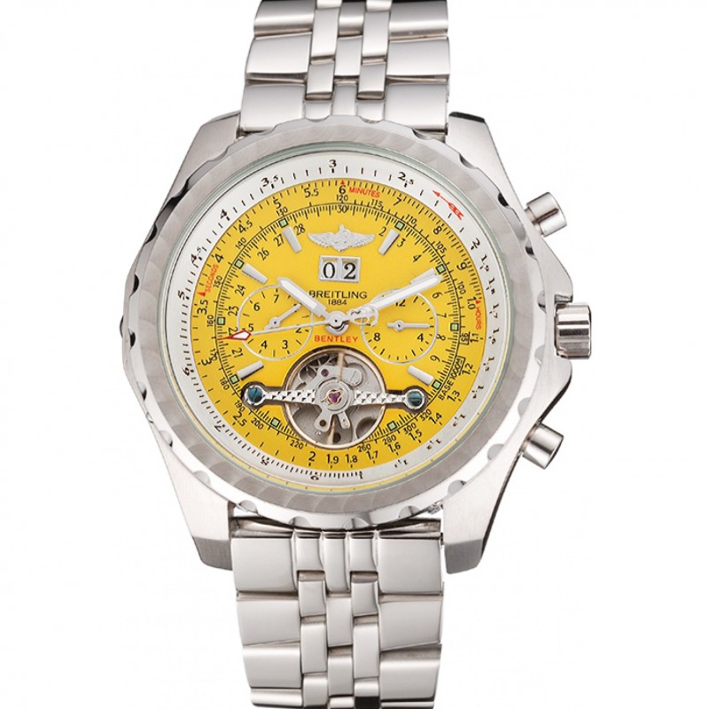 Aktion!Breitling Bentley Mulliner Tourbillon Gelb Zifferblatt aus Edelstahl Gehäuse und Armband 622734