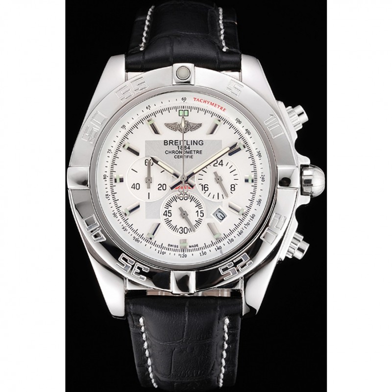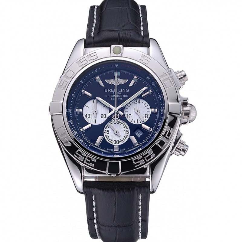 Aktion!Breitling Chronomat 44 Zifferblatt schwarz mit weißen Subdials schwarzen Lederarmband 622511