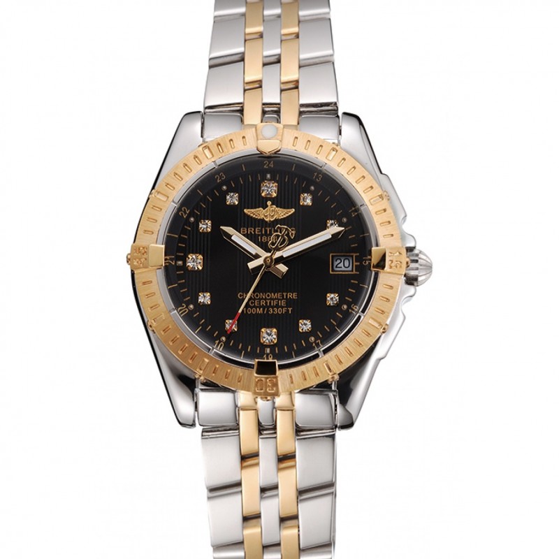 Aktion!Breitling Colt Lady Black Dial Diamant Hour Marks Gold-Lünette Edelstahl Gehäuse-Two Tone-Armband