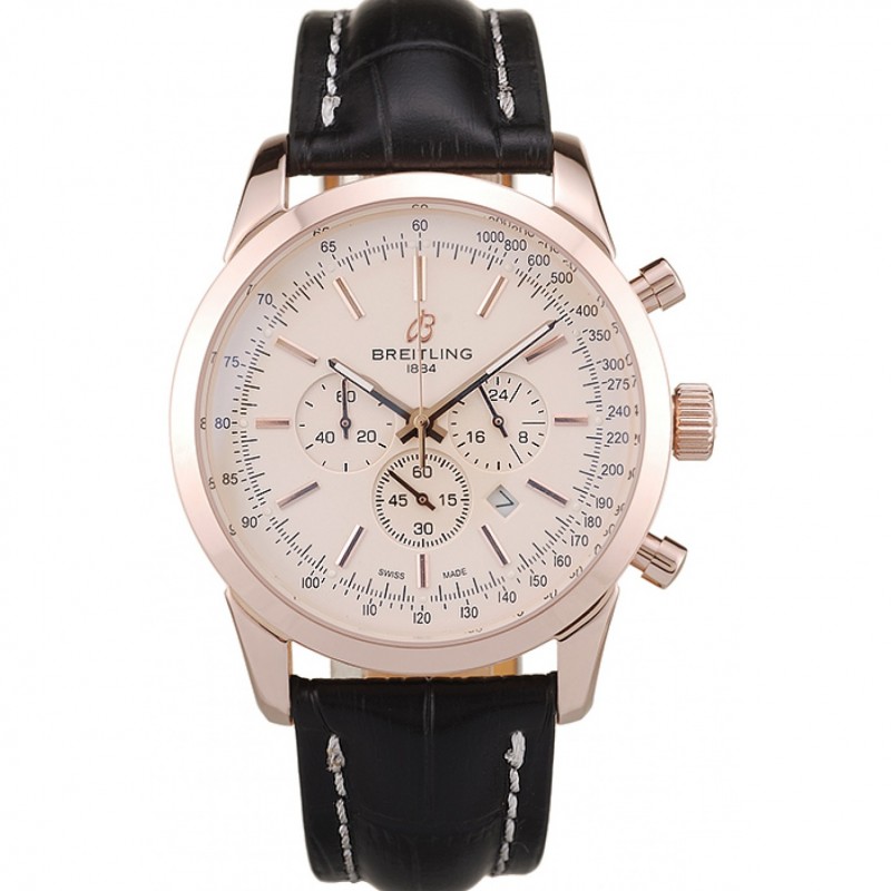 Aktion!Breitling Transocean White Dial schwarzes Lederarmband Rose Gold Lünette 98206