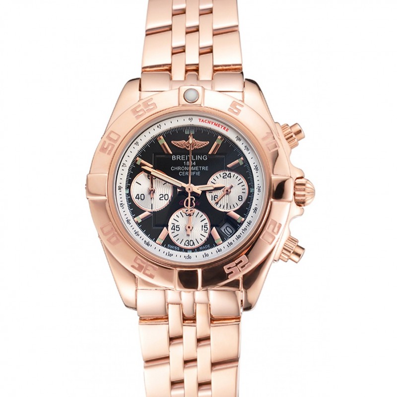 Aktion!Breitling Chronomat schwarzes Zifferblatt Rose Gold Lünette Und Subdials Edelstahl Gehäuse-Schwarz-Gummibügel