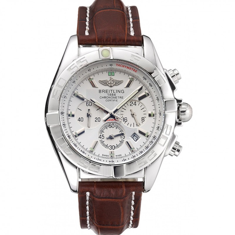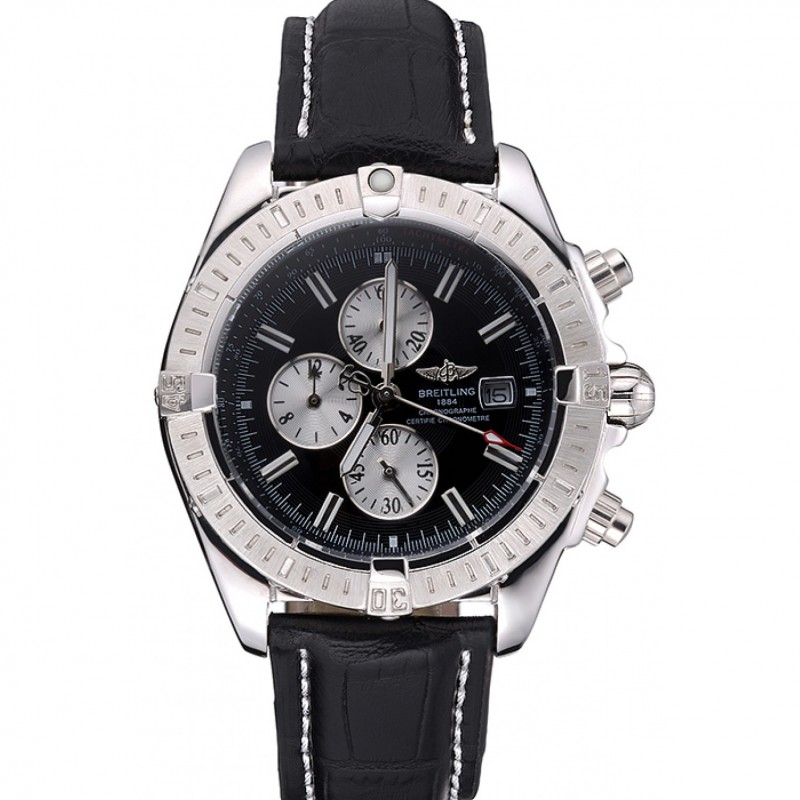 Aktion!Breitling Chronomat 13 Edelstahl Gehäuse mit schwarzem Zifferblatt schwarz Lederarmband 622237