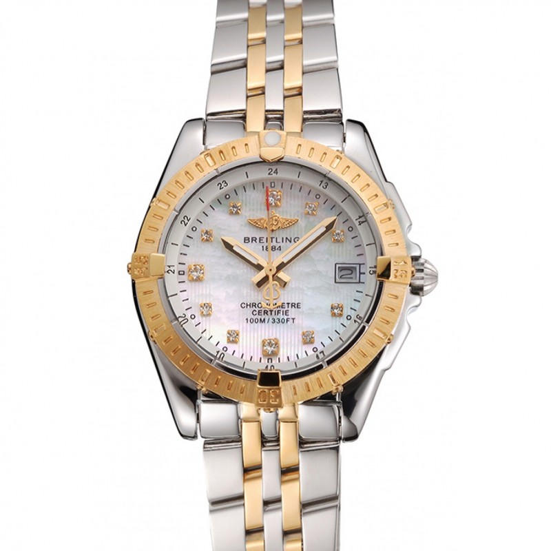 Aktion!Breitling Colt Lady Perle Dial Diamant Hour Marks Gold-Lünette Edelstahl Gehäuse-Two Tone-Armband