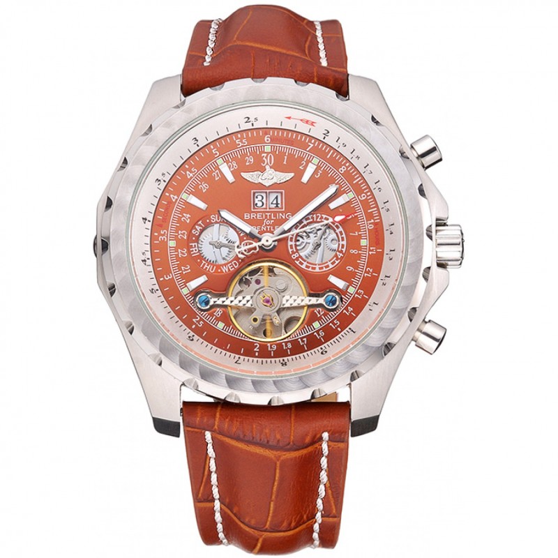 Aktion!Breitling Bentley Mulliner Tourbillon Brown Dial Edelstahl Gehäuse-braunes Lederarmband 622727