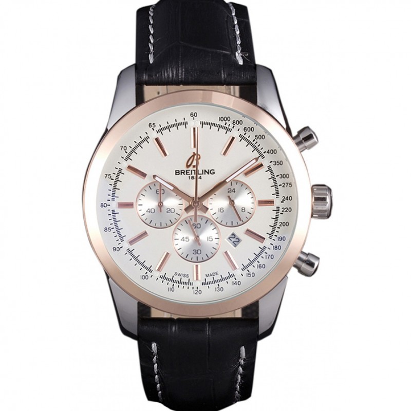 Aktion!Breitling Transocean White Dial schwarzes Lederarmband Rose Gold Lünette 98205