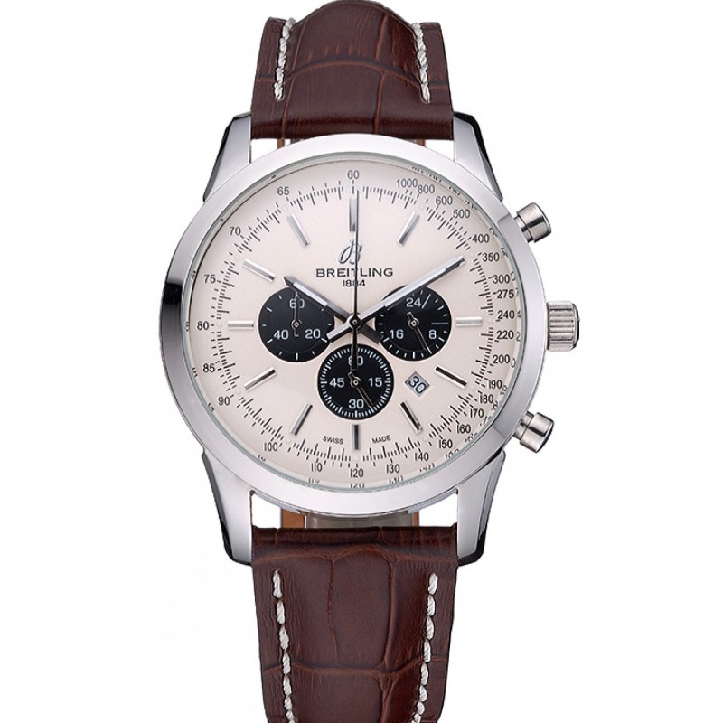 Aktion!Breitling Transocean Chronograph weißes Zifferblatt Edelstahl Gehäuse-Brown-Leder-Armband 622243