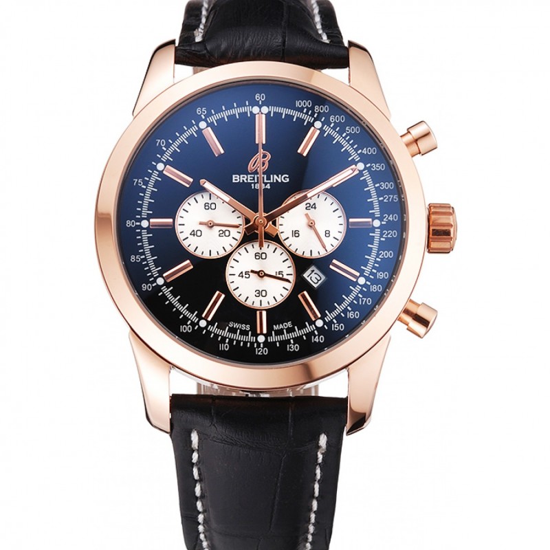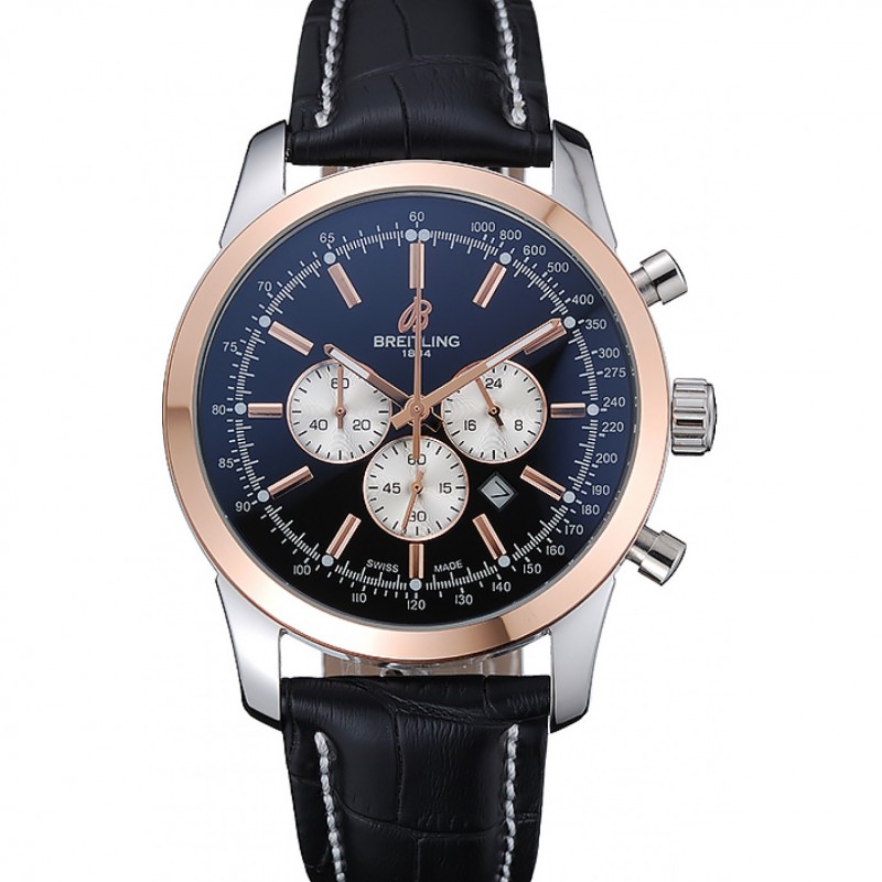 Aktion!Breitling Transocean schwarzes Zifferblatt schwarze Lederband Rose Gold Lünette 98203