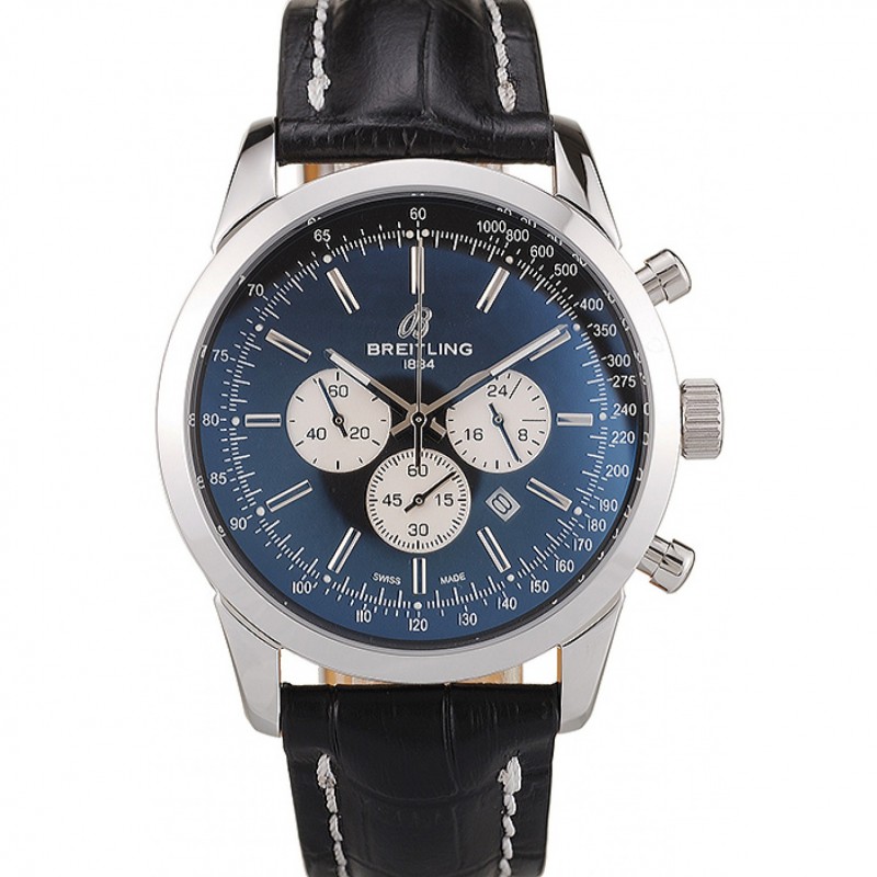 Aktion!Breitling Transocean schwarzem Zifferblatt schwarz Lederband Edelstahl poliert Lünette