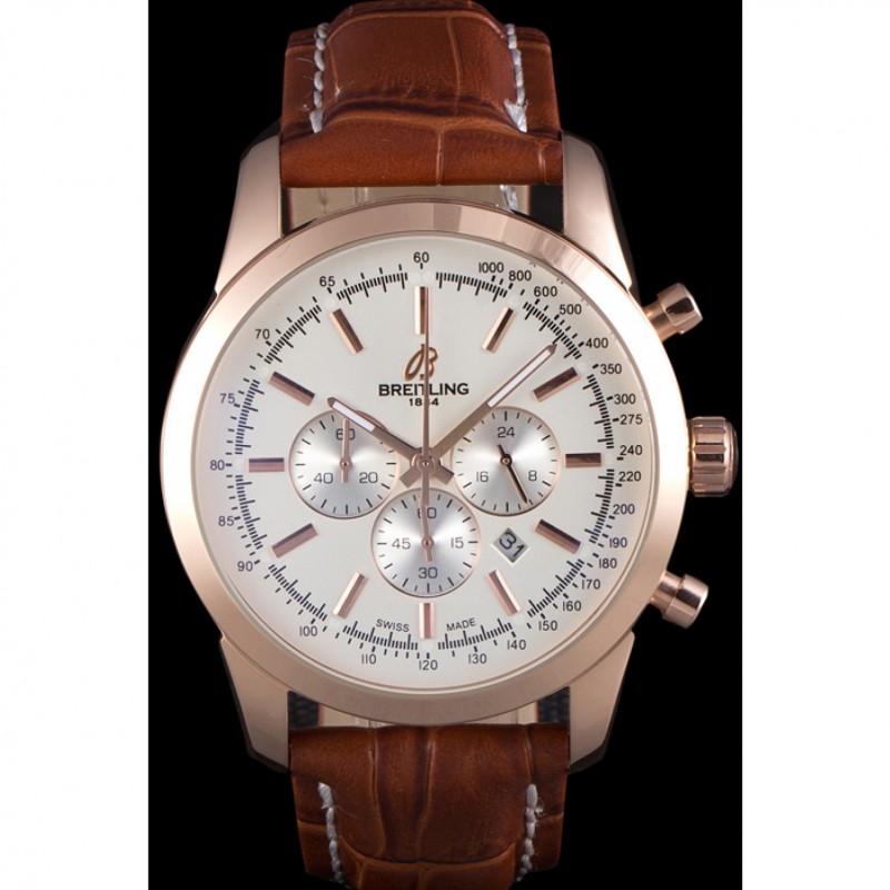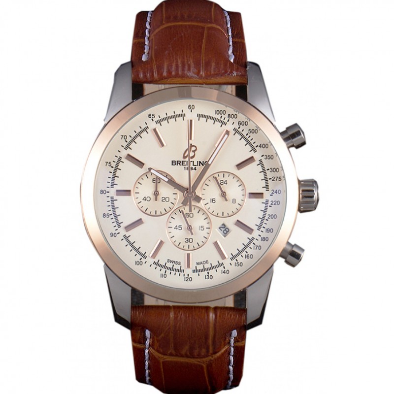 Aktion!Breitling Transocean Weiß Dial Light Brown Lederband Rose Gold Lünette