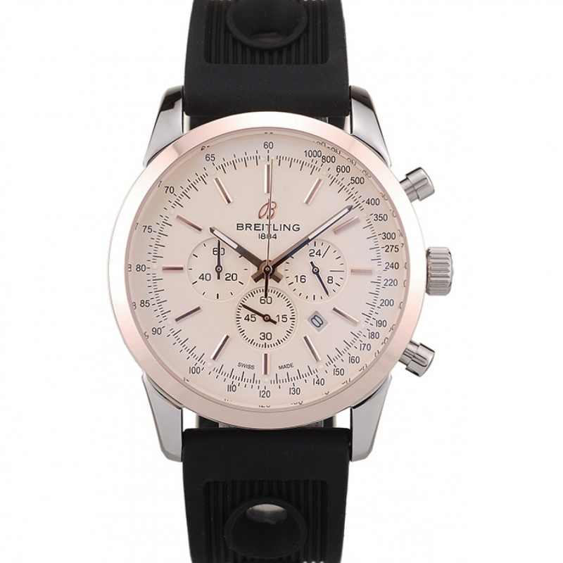 Aktion!Breitling Transocean Weiß Dial Schwarz-Gummibügel-Rose Gold Lünette