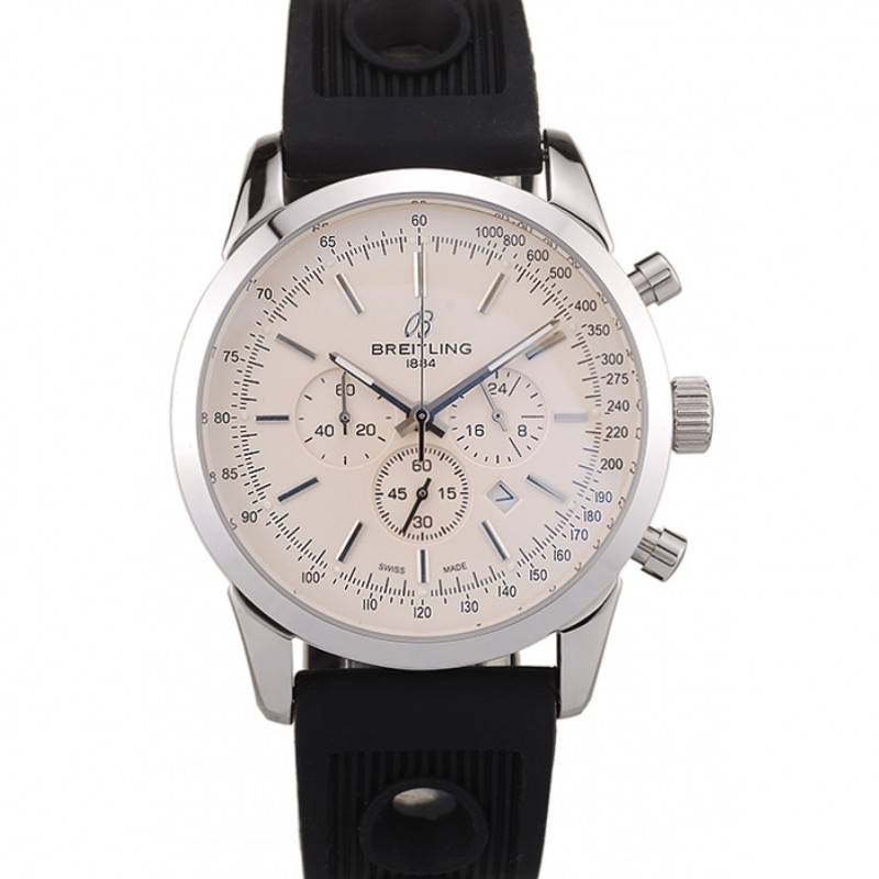 Aktion!Breitling Transocean schwarzes Zifferblatt schwarzes Kautschukband Edelstahl poliert Lünette