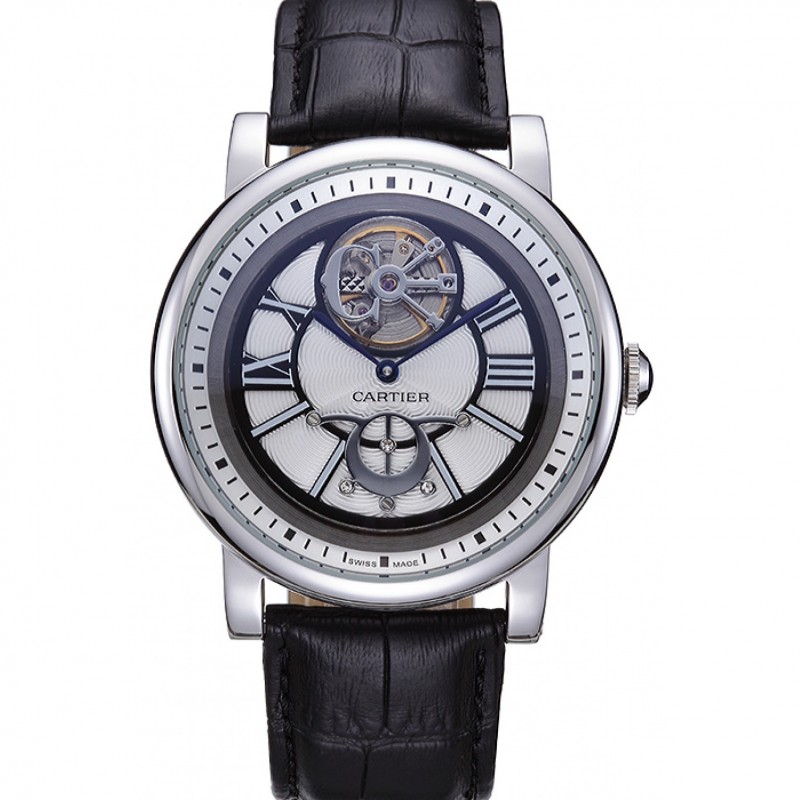 Aktion!Cartier Rotonde fliegendes Tourbillon weißes Zifferblatt 621945