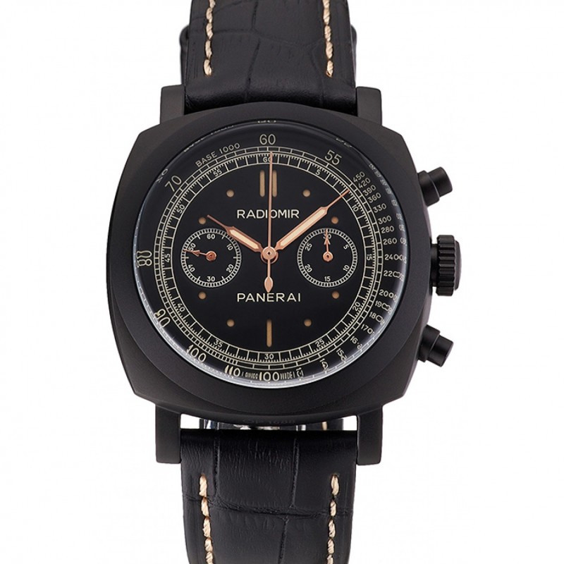 Aktion!Schweizer Panerai Radiomir 1940 Chronograph mit schwarzem Zifferblatt schwarz ionisiertes Fall schwarzem Lederarmband