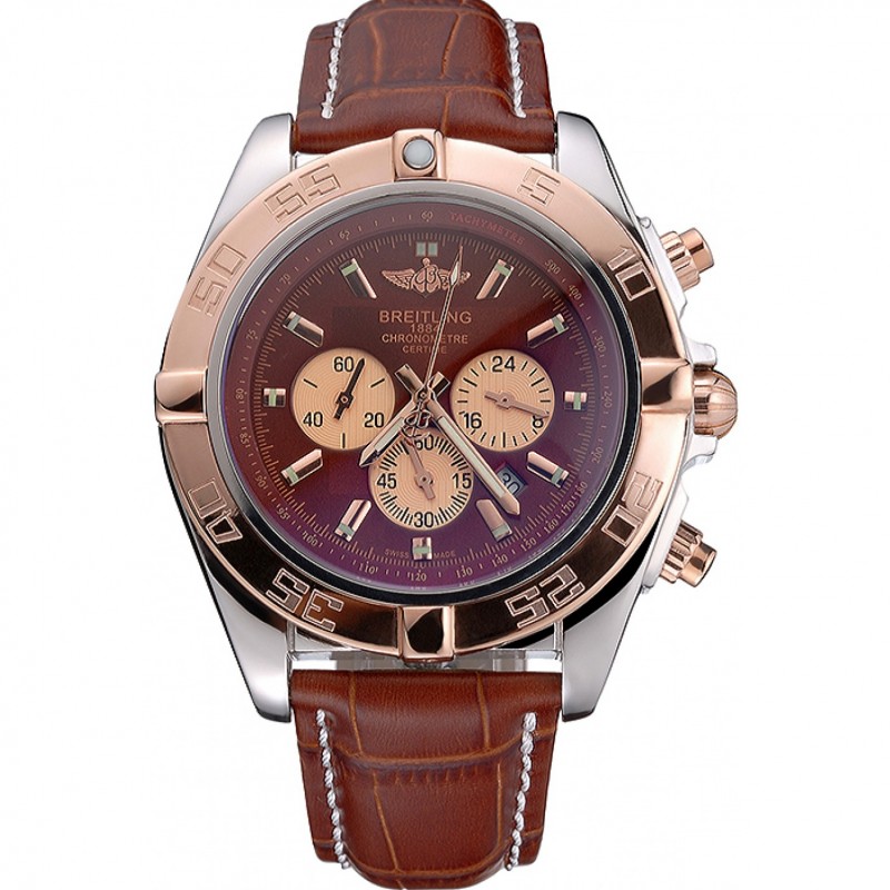 Aktion!Breitling Chronomat Brown Dial Rose Gold Lünette Und Subdials Edelstahl Gehäuse-braunes Lederarmband