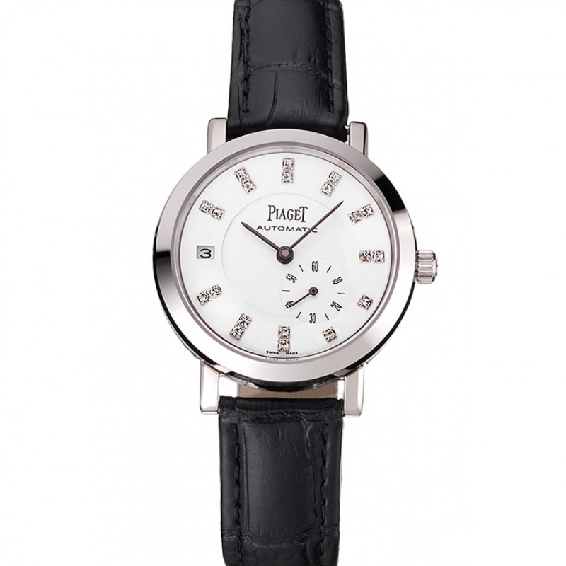 Aktion!Swiss Piaget Altiplano Date Automatic weißes Zifferblatt Diamant Marker Edelstahl Gehäuse schwarzen Lederarmband