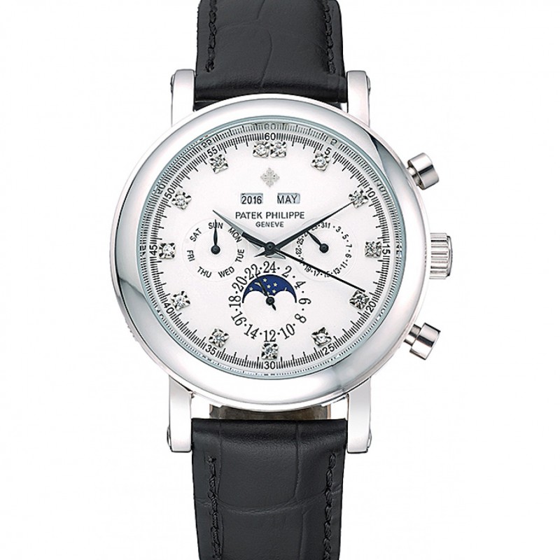 Aktion!Patek Philippe Grand Komplikationen Ewiger Kalender White Dial Schwarz-Leder-Armband