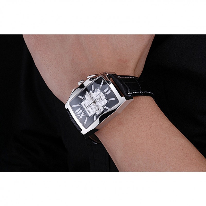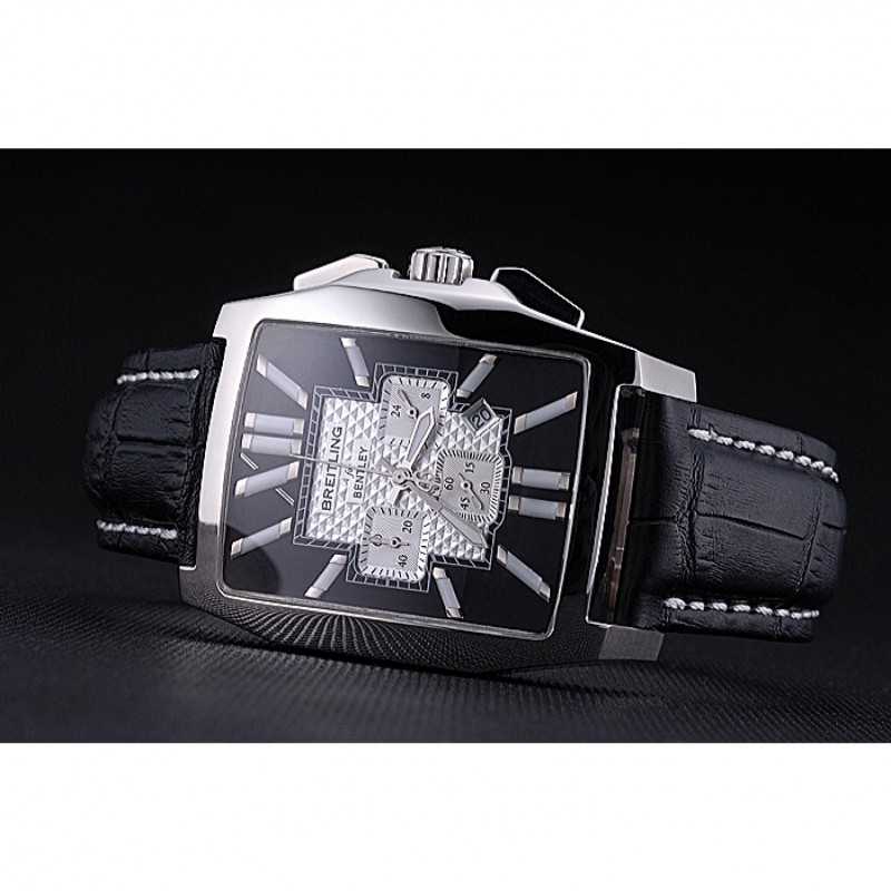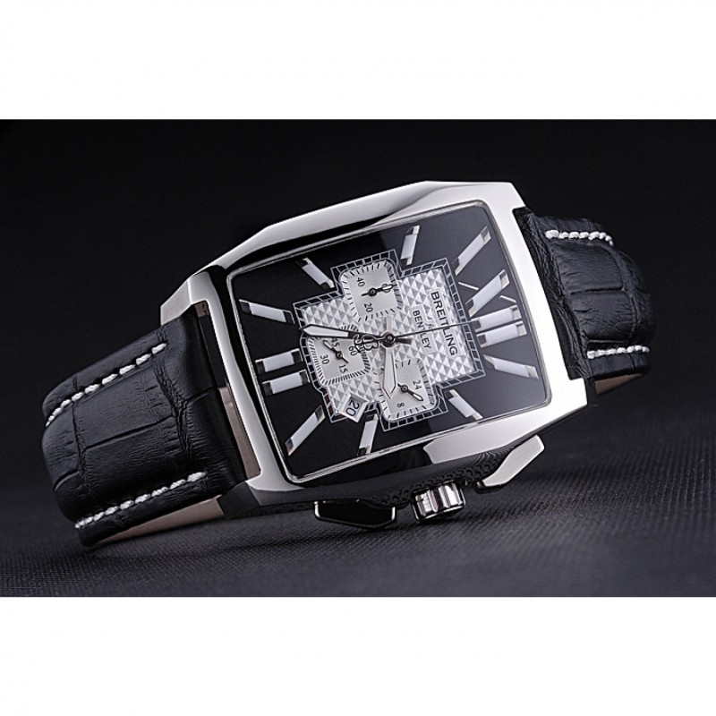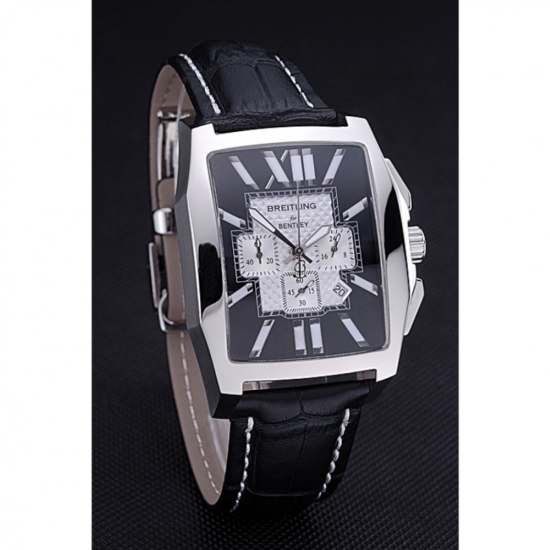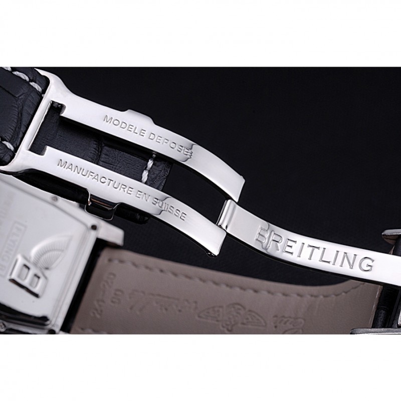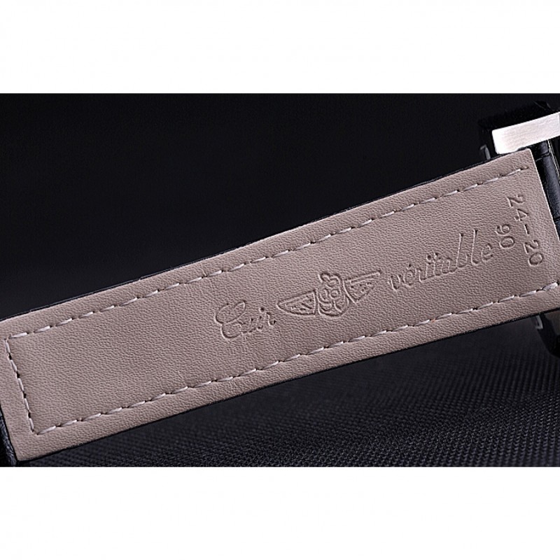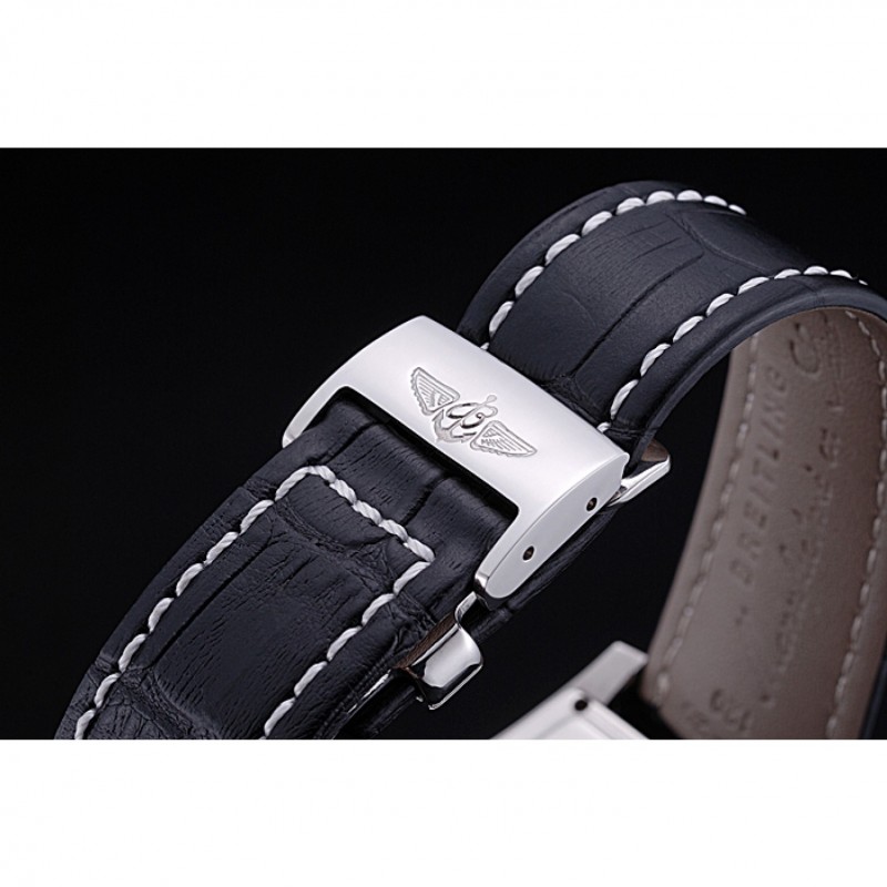 Armband:Cuir Veritable Wärme schwarzer Krokolederarmband polierten Einfalt-Spange Edelstahl mit weißer Fadenheftung und Breitling geprägter logo eingraviertBand-Typ: Leder