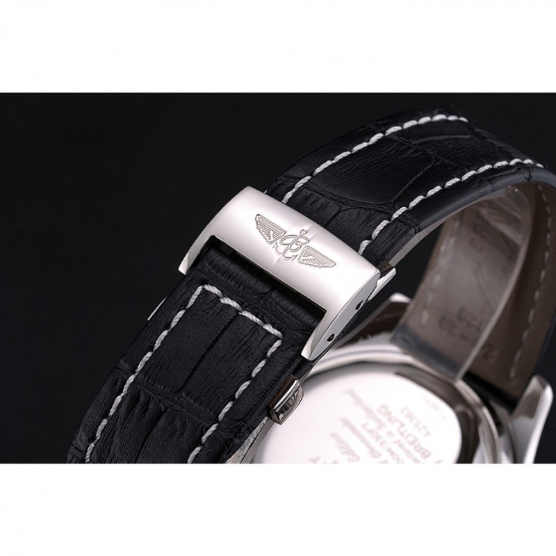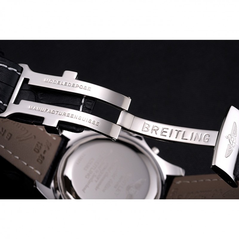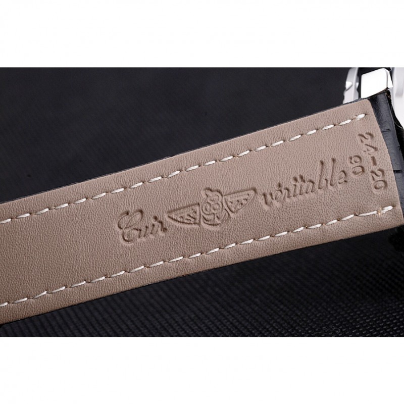 Armband: Schwarz Krokodil Lederarmband mit Patent weißen Nähten und Wärme geprägt Breitling Gravuren und Edelstahl-fach in Spange mit Breitling logo oben graviert
