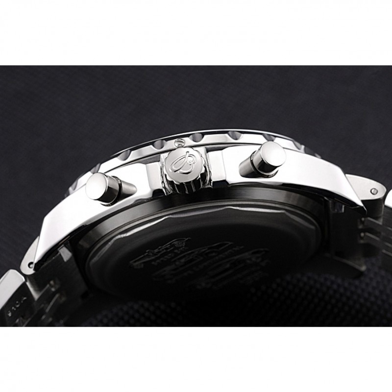 Crown : Breitling logo graviert polierte Edelstahl cutwork Krone mit einer runden polierten Edelstahl Druckknopf Krone auf beiden Seiten davon