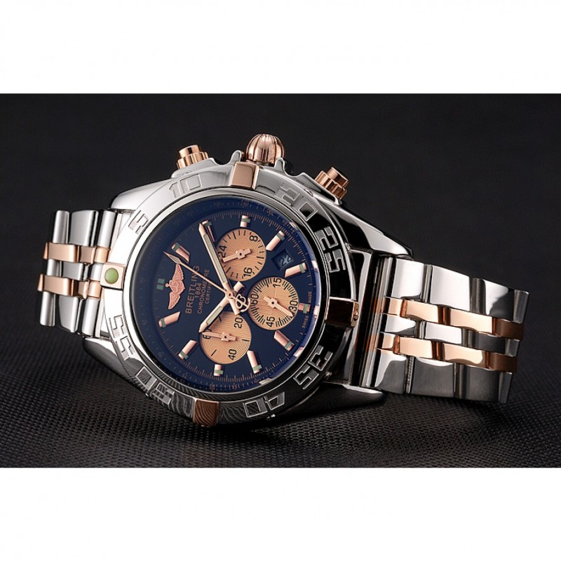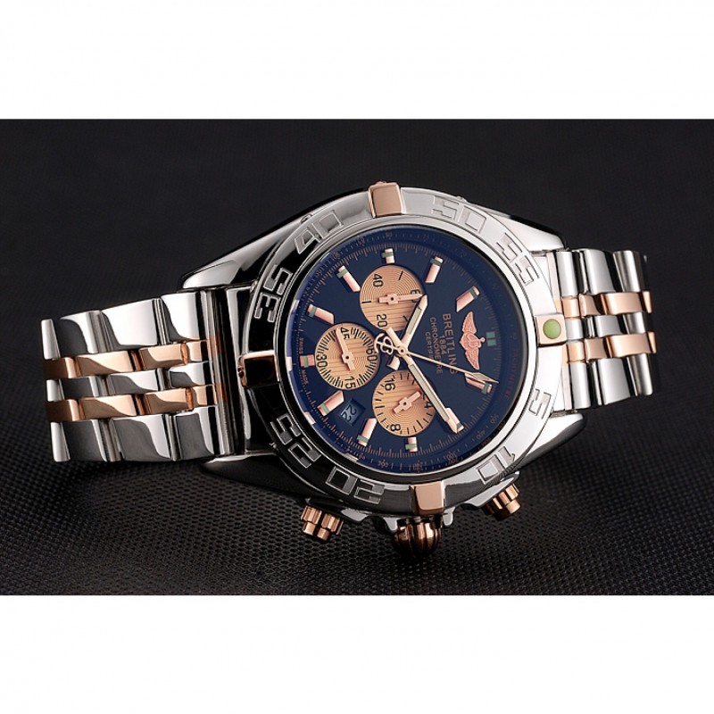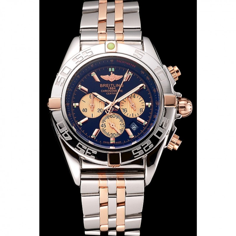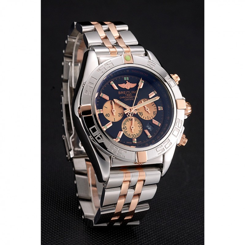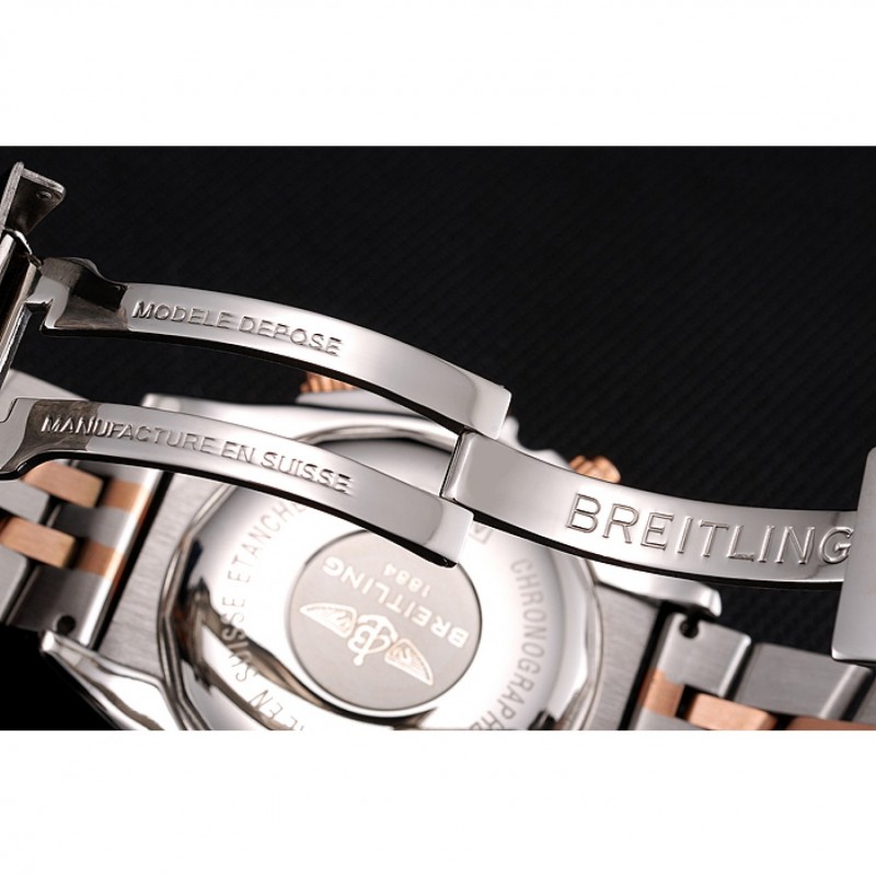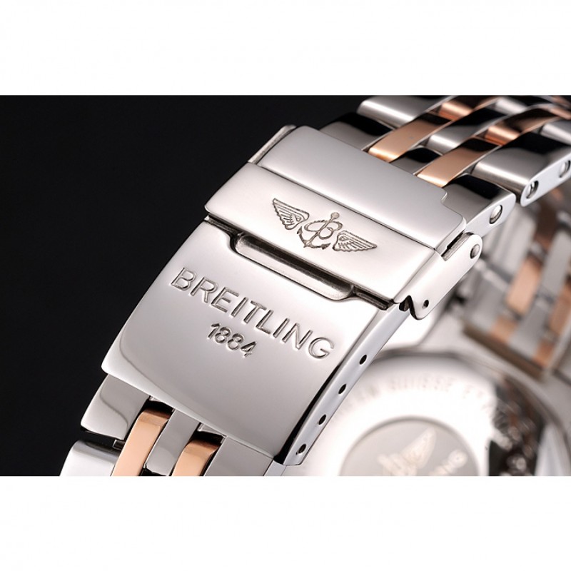 Crown: Cutwork domförmigen 18k Rose-Gold-plattierte Krone und ein 18k rose-Gold auf beiden Seiten davon plattiertenArmband: aus poliertem Edelstahl und 18 Karat Roségold-Gliederarmband mit logo und Breitling 1884 plattiert gravierten Einfalt-Push-Release Verschluss