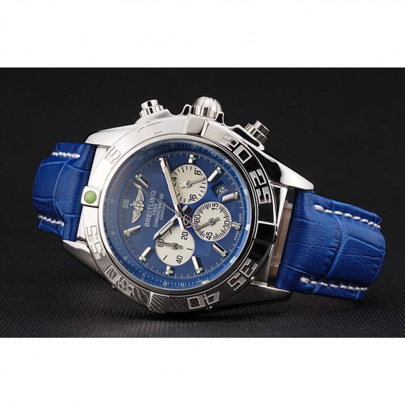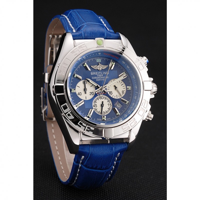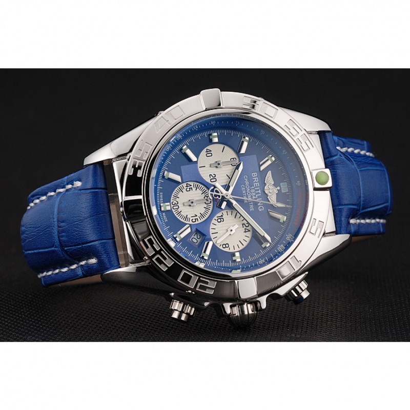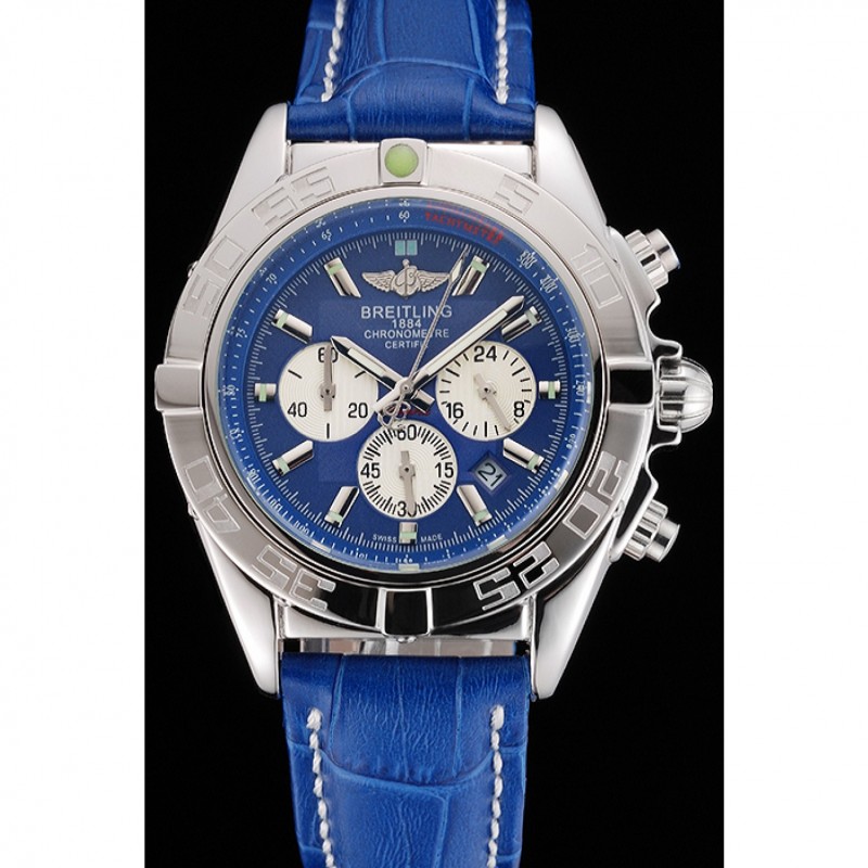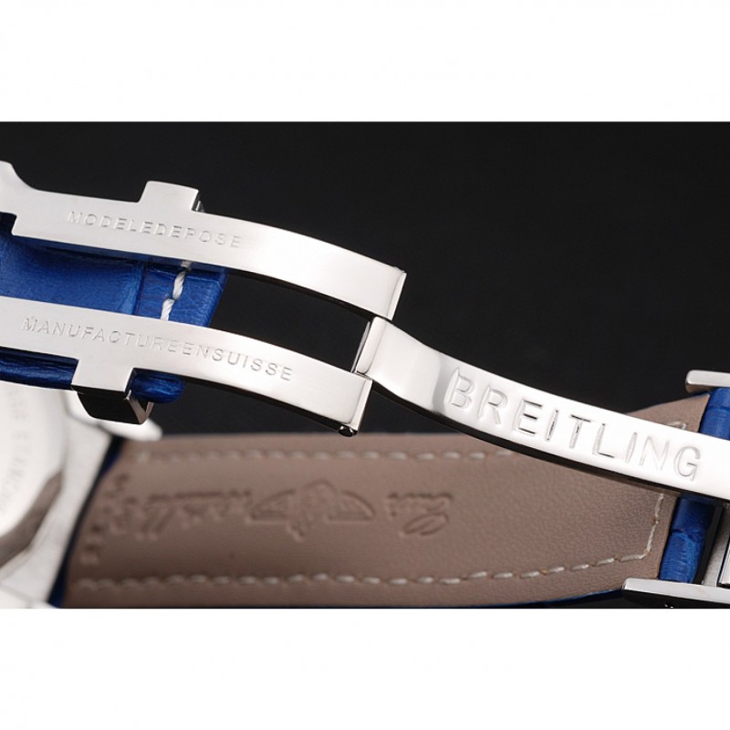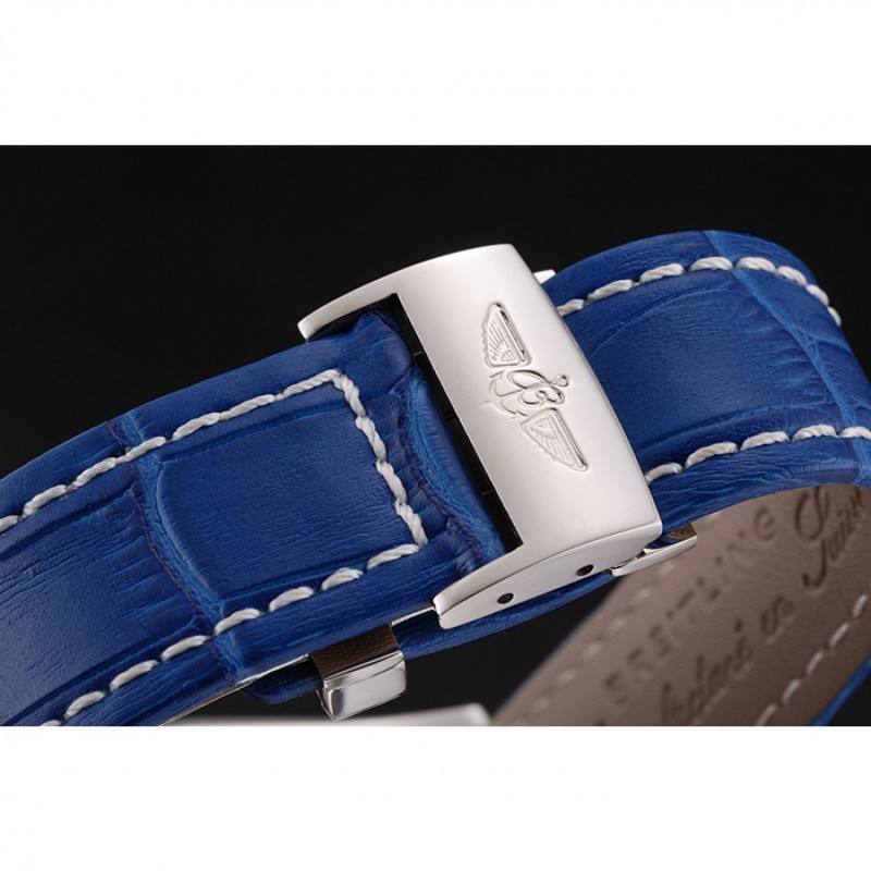 Armband: Cuir Veritable Wärme geprägt blau Krokodillederband mit weißer Fadenheftung und Breitling logo graviert polierter Edelstahl FaltschließeBand-Typ: Leder