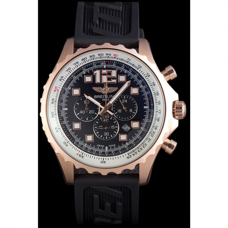 Breitling Navitimer Rosegold Lünette Kautschukband Zifferblatt schwarz
