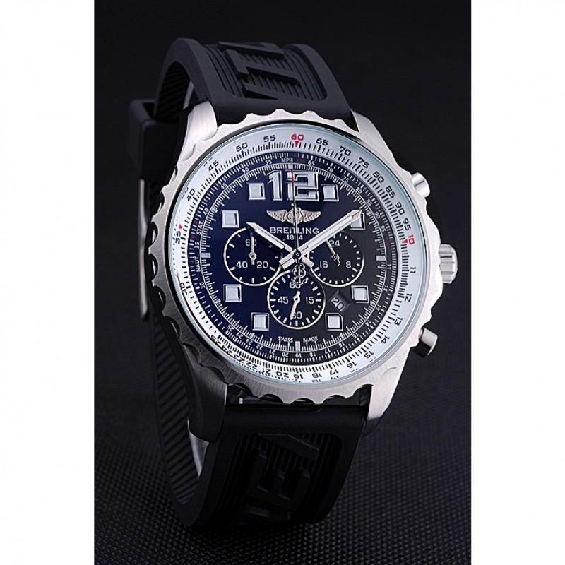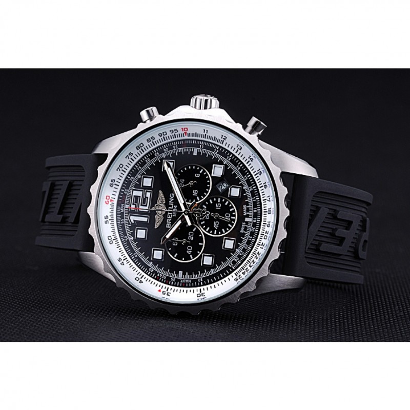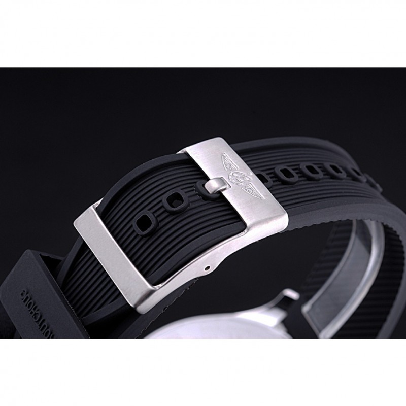Armband: Breitling Hitze geprägte schwarzes Kautschukarmband mit Breitling logo graviert polierter Edelstahl Haken-Schließe