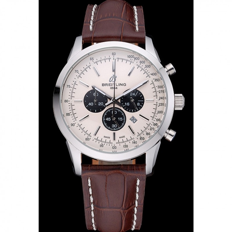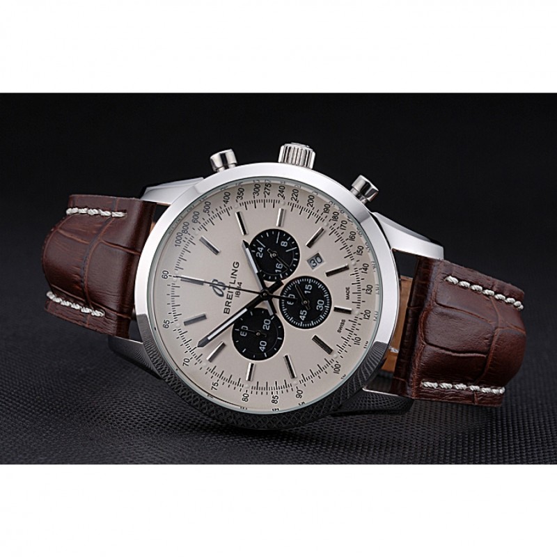 Armband: Breitling Manufacture de Suisse und das logo Hitze braun Krokodillederband mit weißer Fadenheftung und eingraviertem logo aus poliertem Edelstahl Einfalt-Verschlussgeprägt