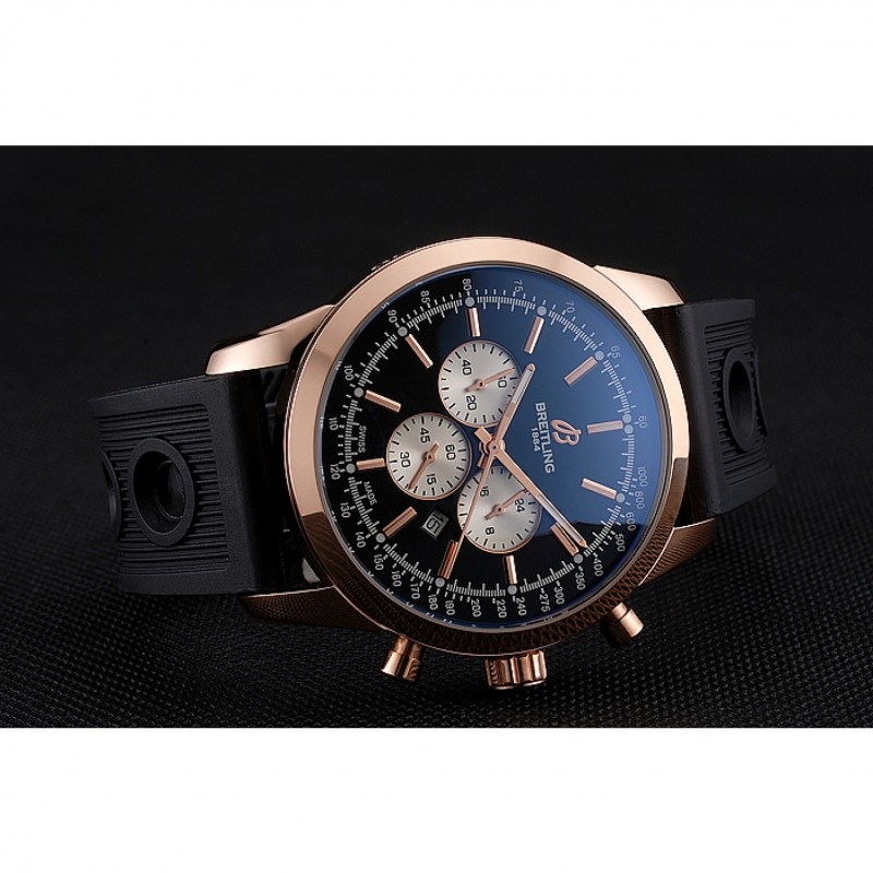Armband : Schwarzes Kautschukband mit Breitling logo graviert versilberte Haken-Schließe