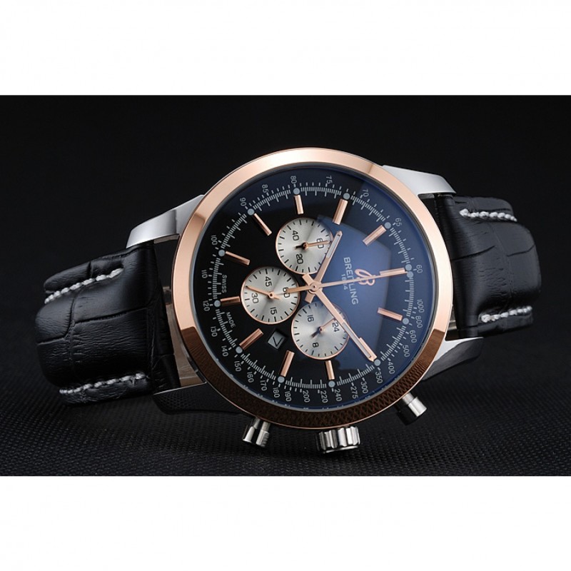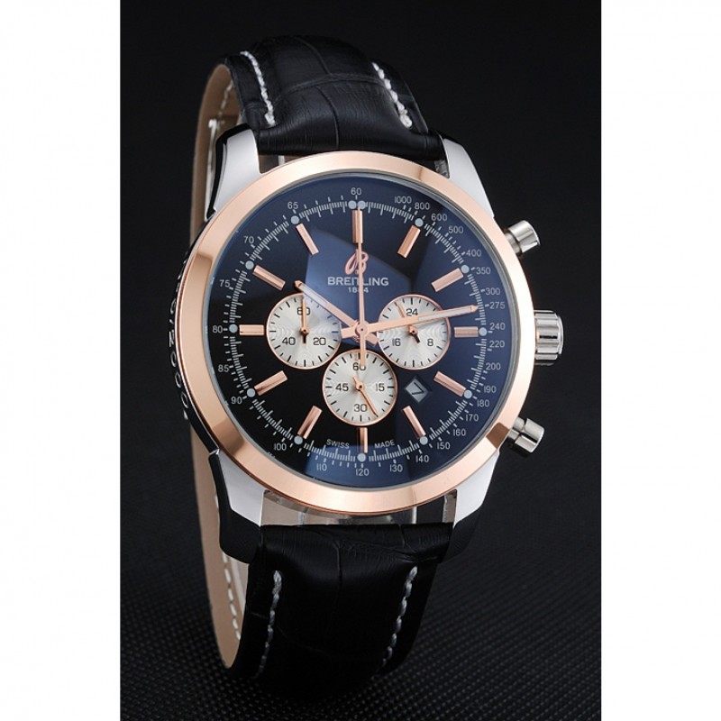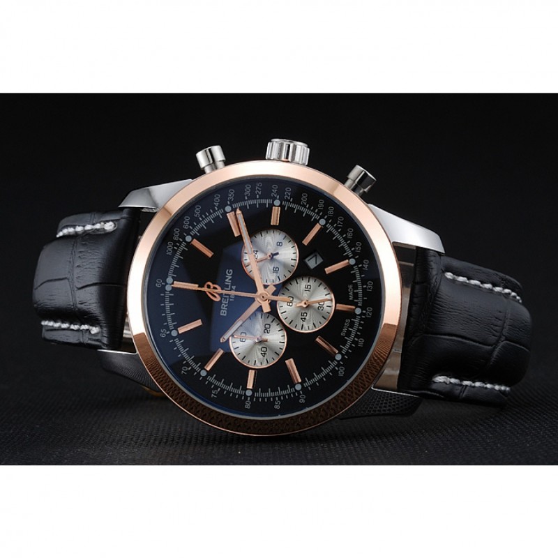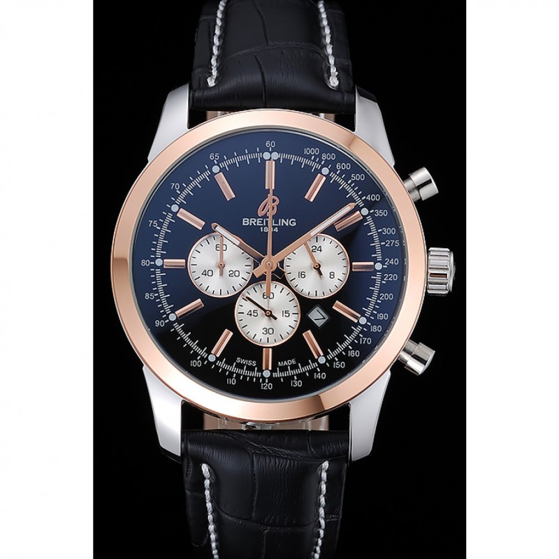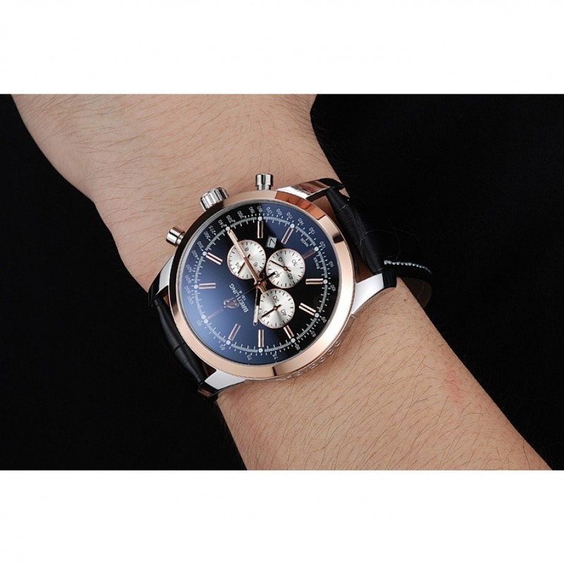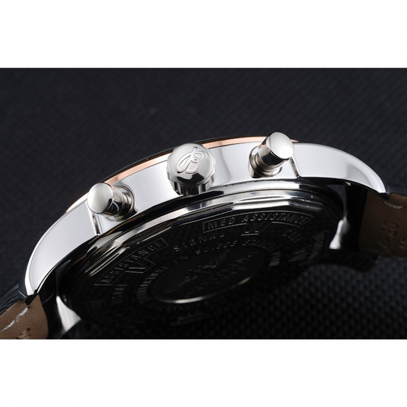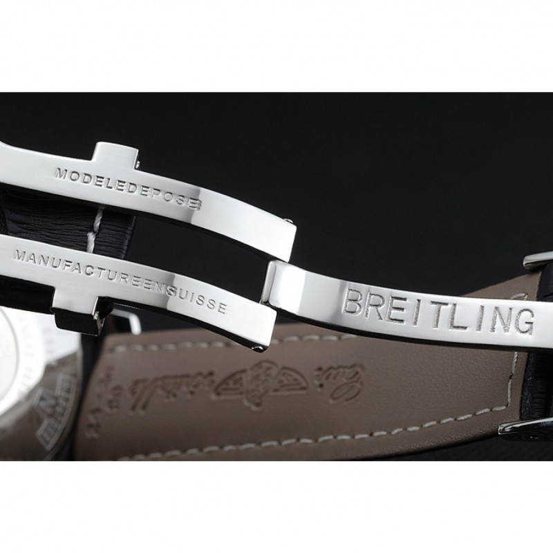 Armband:Wärme geprägt Breitling schwarzer Krokolederarmband mit weißer Fadenheftung und einem Breitling-logo eingraviert Einfalt-Edelstahlhaken