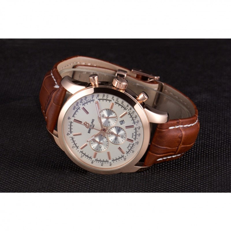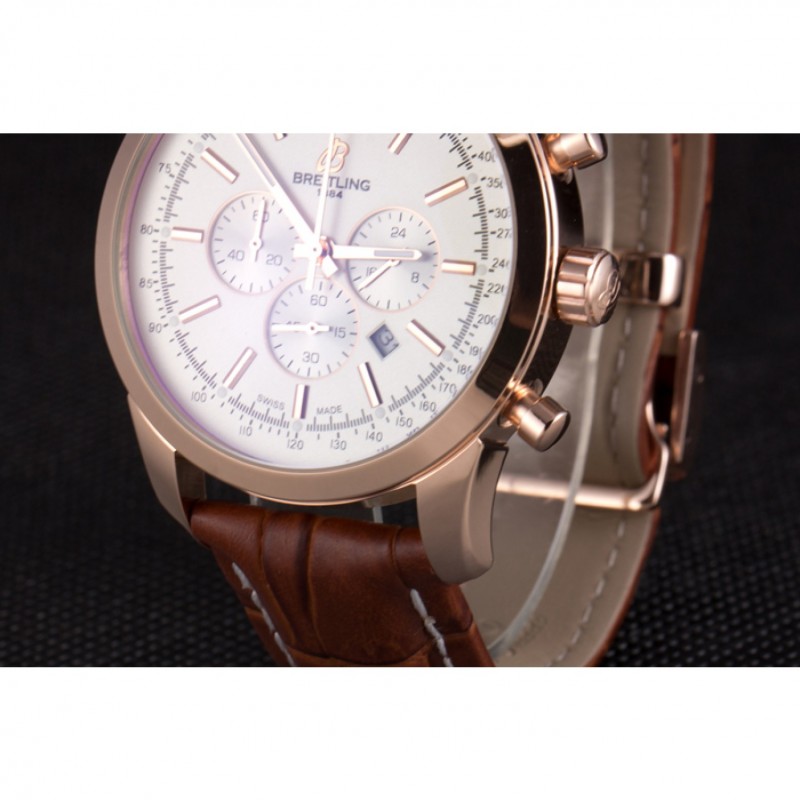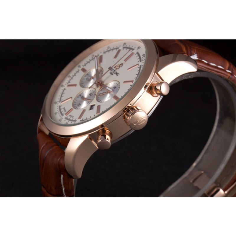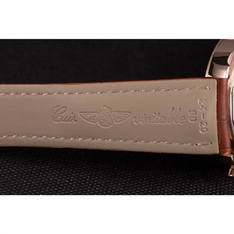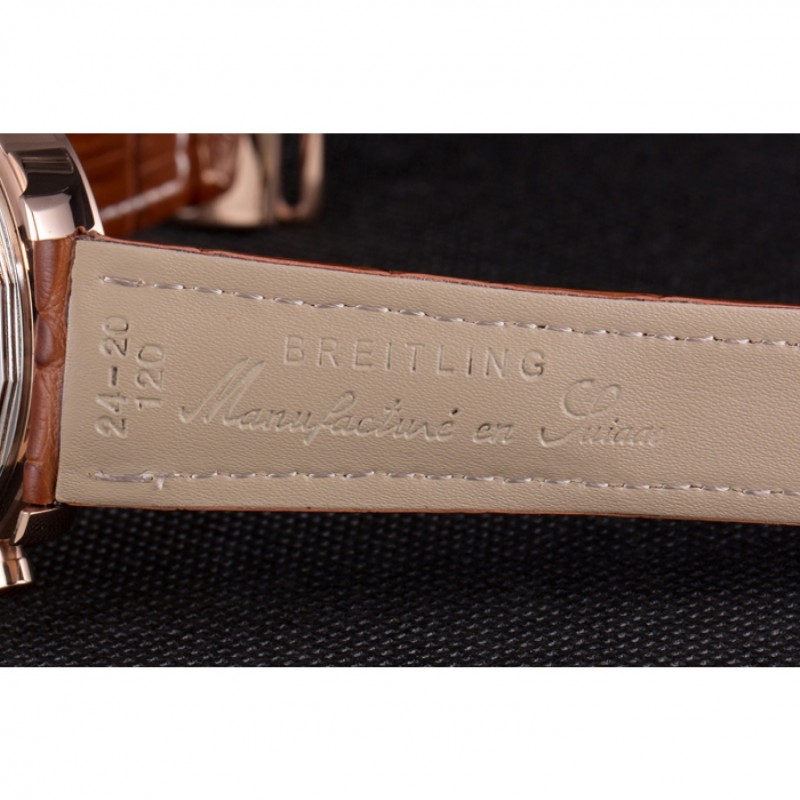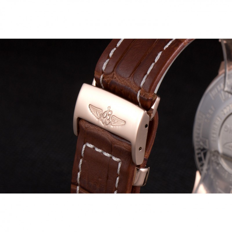 Armband : Hitze geprägt Breitling braun Krokolederband mit weißer Fadenheftung und einer Breitling logo graviert Einfalt-Rose-Gold-Spange überzog