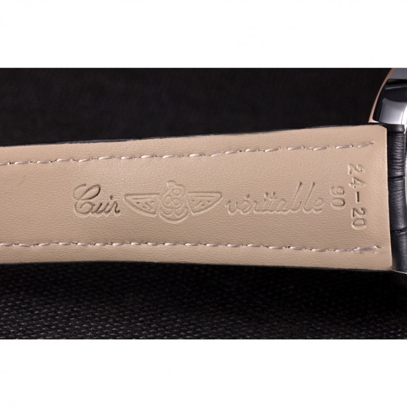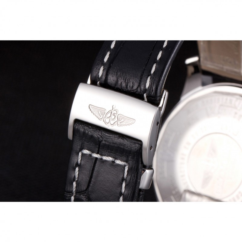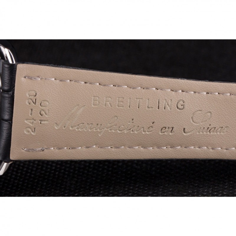 Armband:Wärme geprägt Breitling schwarzer Krokolederarmband mit weißer Fadenheftung und einem Breitling-logo eingraviert Einfalt-Edelstahlhaken