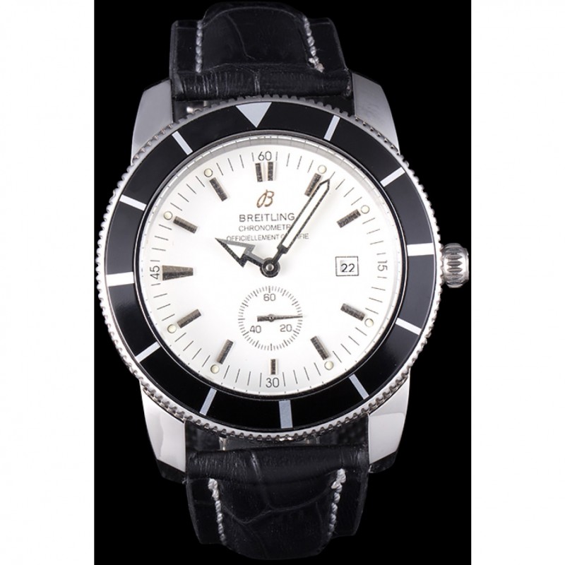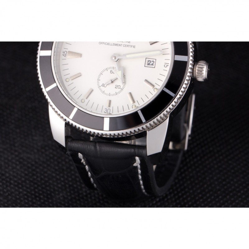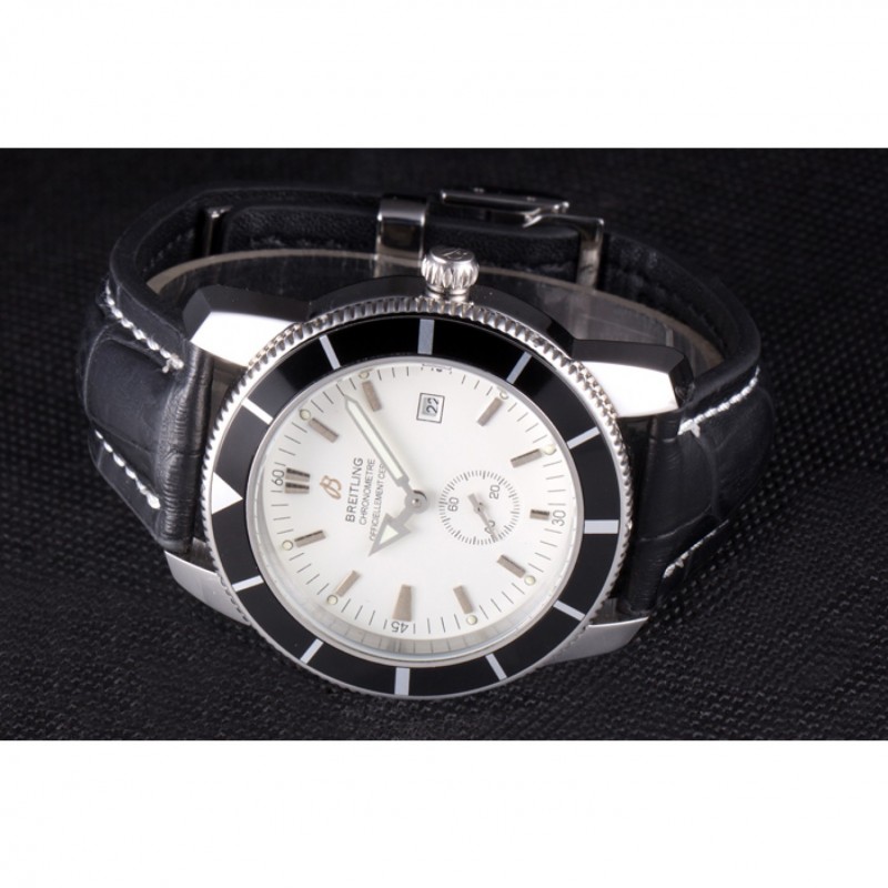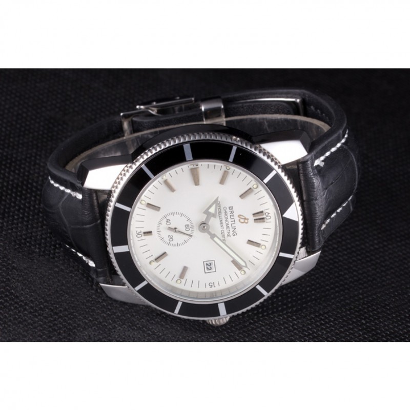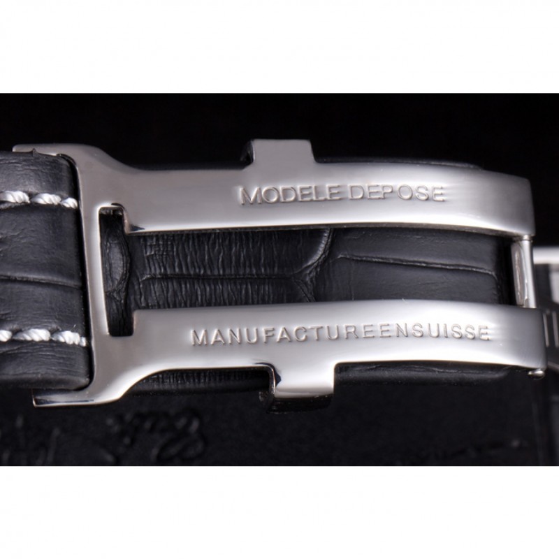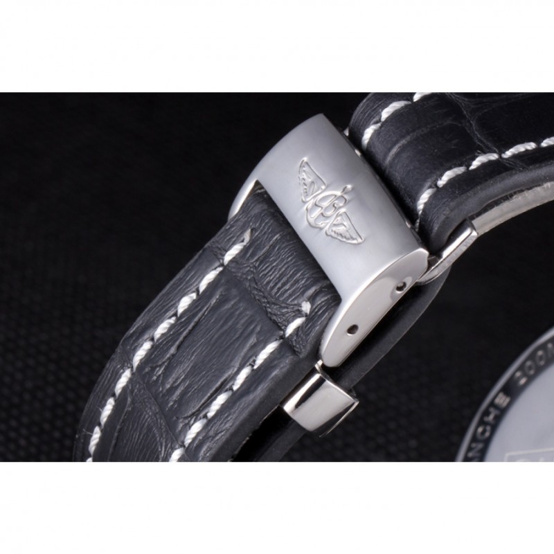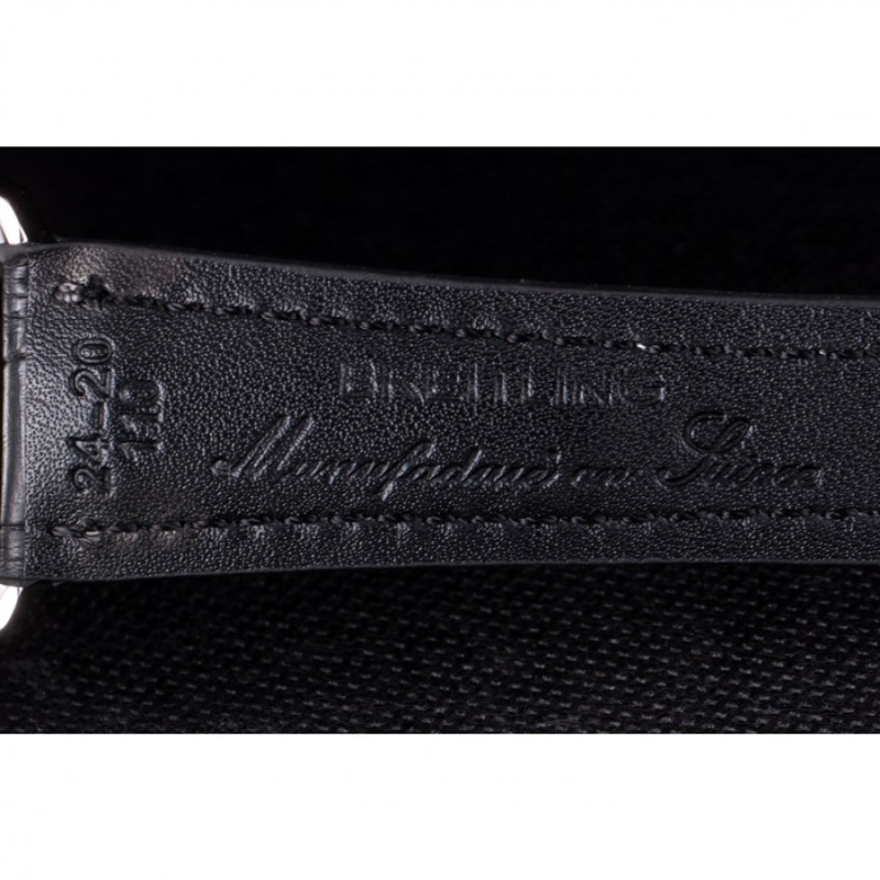 Armband: Breitling 1884 und das logo Wärme geprägt schwarzes Lederarmband mit weiße Naht und Edelstahlhaken-Schließe
